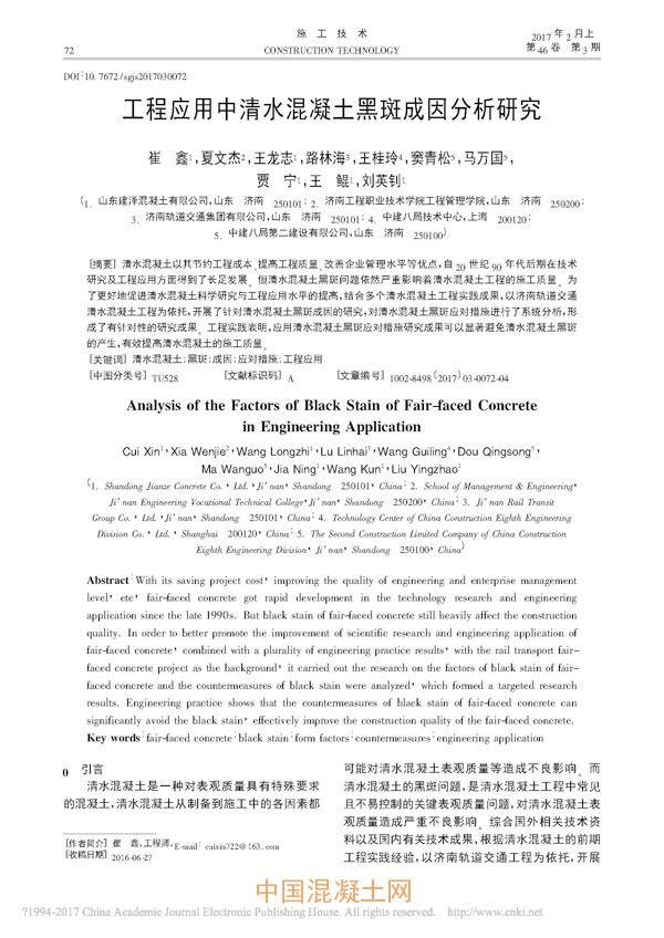 點擊下載全文:工程應用中清水混凝土黑斑成因分析研究