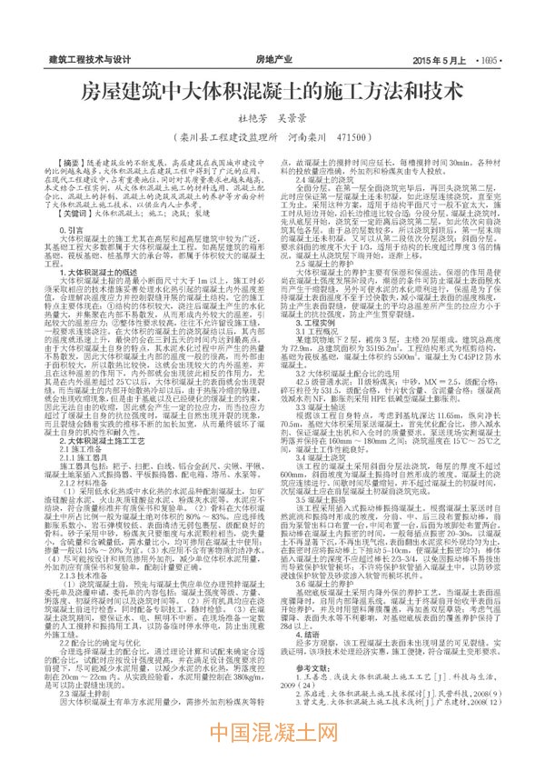 點擊下載全文:房屋建筑中大體積混凝土的施工方法和技術
