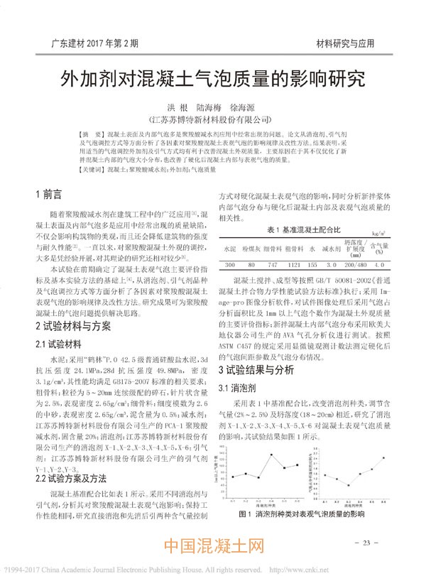 點擊下載全文:外加劑對混凝土氣泡質量的影響研究