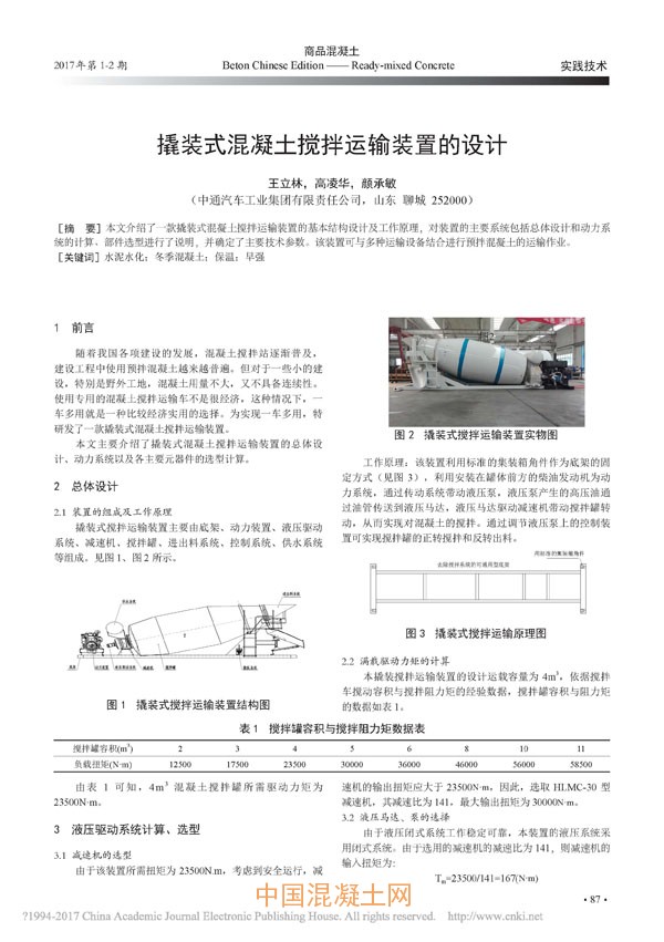 點擊下載全文:撬裝式混凝土攪拌運輸裝置的設(shè)計