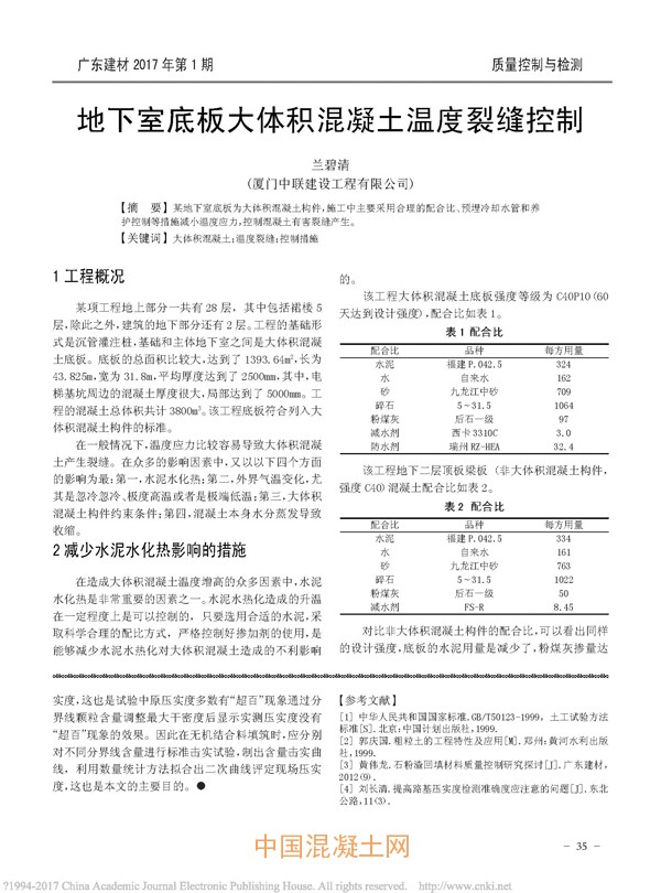 點擊下載全文:地下室底板大體積混凝土溫度裂縫控制