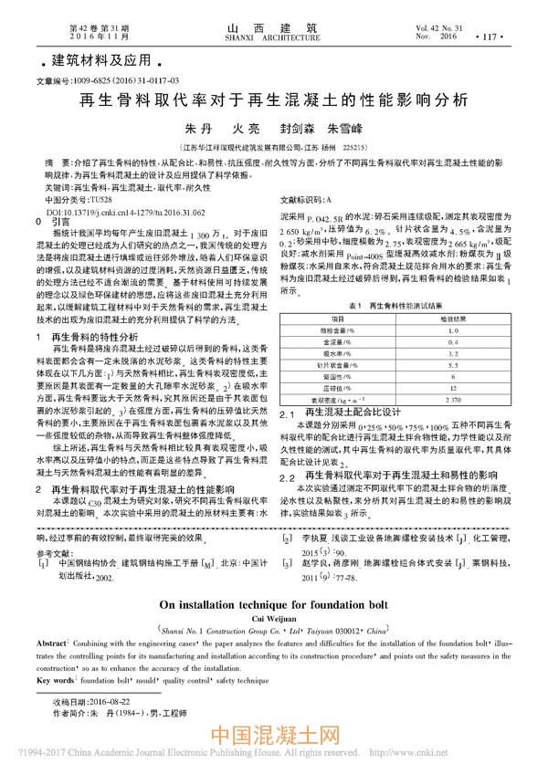 點擊下載全文:再生骨料取代率對于再生混凝土的性能影響分析