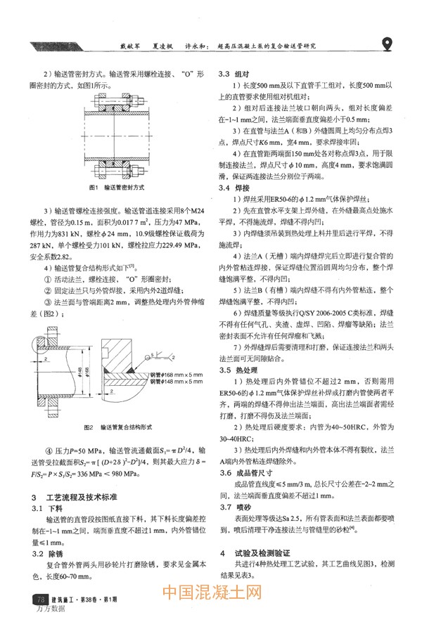 點擊下載全文:超高壓混凝土泵的復合輸送管研究