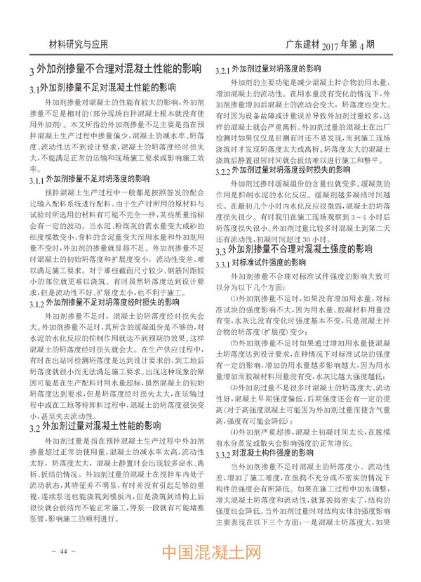 核心提示:本文主要探討混凝土生產過程中外加劑摻量對混凝土坍落度、坍落度損失、工作性能、強度的影響。外加劑摻量不足時,混凝土的坍落度小、坍落度的經時損失大;外加劑過量時,混凝土坍落度過大、離析,混凝土澆筑過程中就會出現粘底板結、堵塞泵管、凝結時間長等現象,拆模后可能還會出現蜂窩、麻面,對混凝土試件及構件的強度也有一定的影響。生產過程中要根據原材料的質量狀況結合混凝土拌合物的性能確定一個比較合理的摻量。
