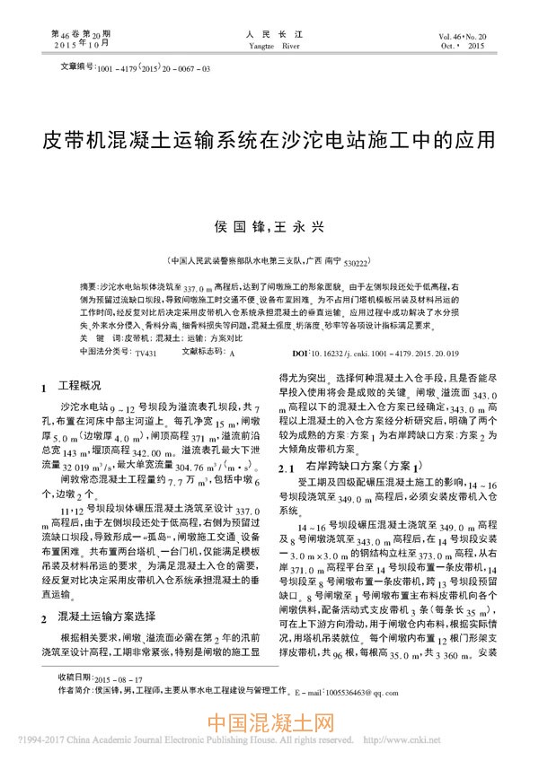點擊下載全文:皮帶機混凝土運輸系統在沙沱電站施工中的應用