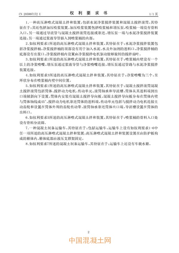 高壓淋噴式混凝土拌和裝置及混凝土制備運(yùn)輸車(公開號:CN205997172U)