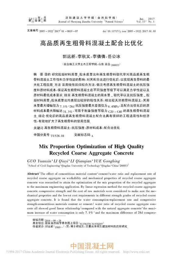 點擊下載全文:高品質再生粗骨料混凝土配合比優化
