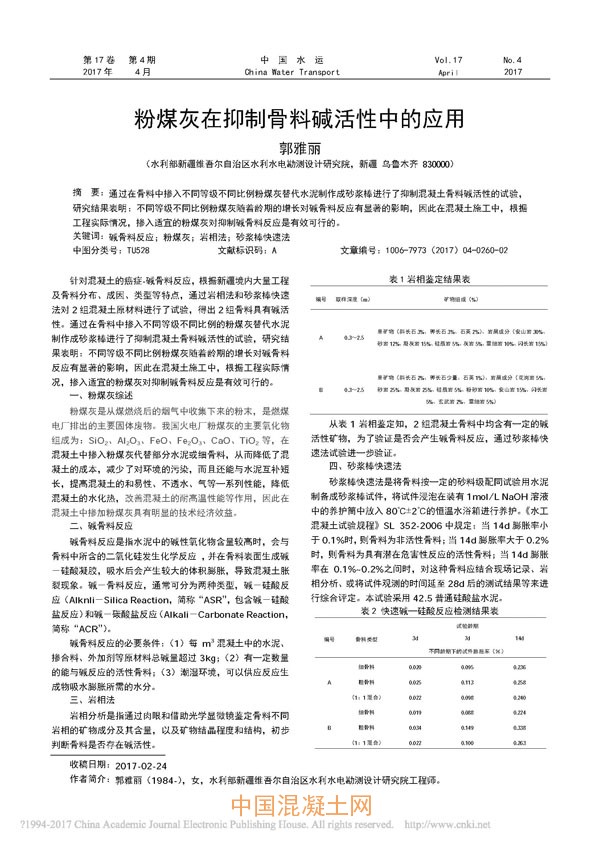 點擊下載全文:粉煤灰在抑制骨料堿活性中的應用