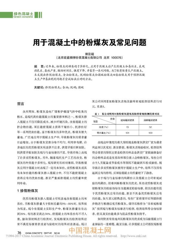 點擊下載全文:用于混凝土中的粉煤灰及常見問題