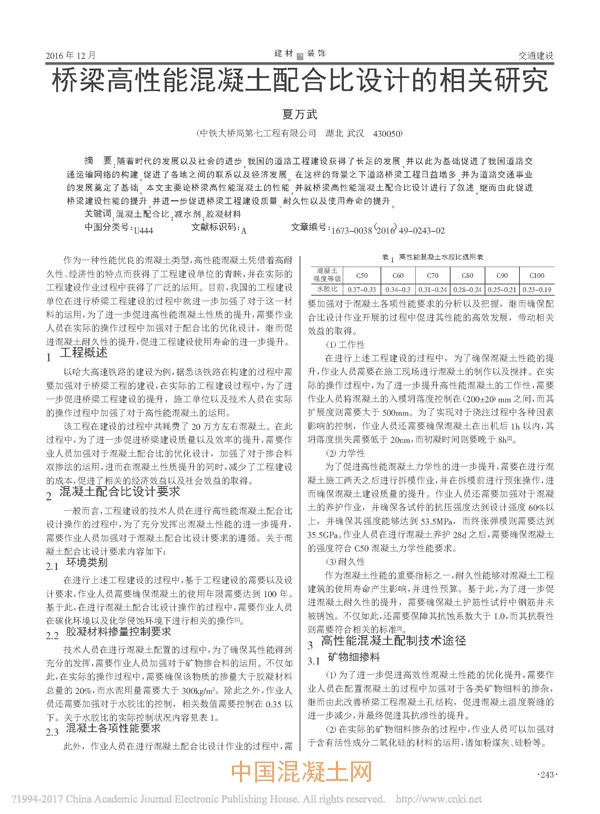 點擊下載全文:橋梁高性能混凝土配合比設計的相關研究