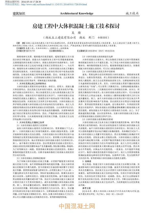 點擊下載全文:房建工程中大體積混凝土施工技術探討