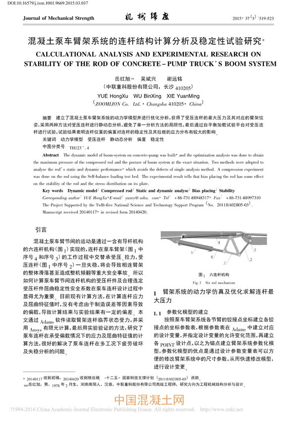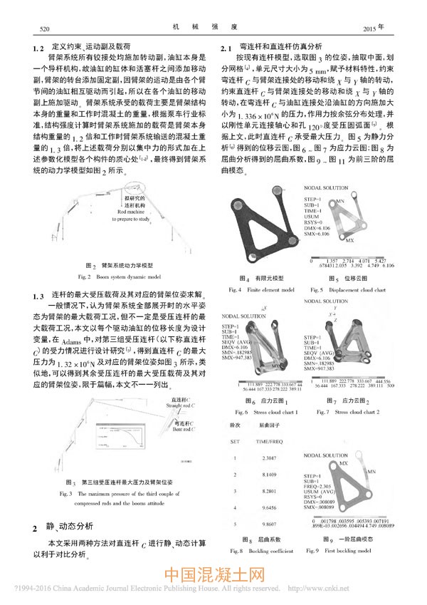 點擊下載全文:混凝土泵車臂架系統(tǒng)的連桿結構計算分析及穩(wěn)定性試驗研究
