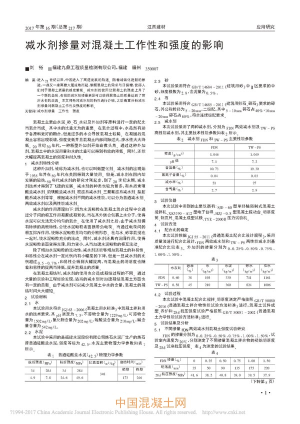 點擊下載全文:減水劑摻量對混凝土工作性和強度的影響