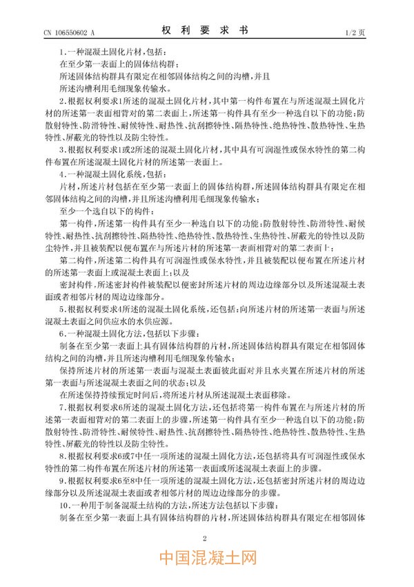 用于固化混凝土的片材和系統、混凝土固化方法以及用于制備混凝土結構的方法(公開號:CN106550602A)
