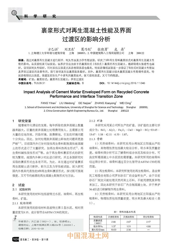 裹漿形式對再生混凝土性能及界面過渡區的影響分析