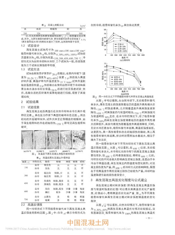 核心提示:針對(duì)以往沒有考慮冷卻方式對(duì)再生混凝土高溫后強(qiáng)度的影響,以及再生混凝土高溫后強(qiáng)度改變機(jī)理不夠明確的現(xiàn)狀,進(jìn)行了再生混凝土高溫后經(jīng)歷自然冷卻(自冷)和水冷卻(水冷)后的抗壓強(qiáng)度試驗(yàn),基于試驗(yàn)結(jié)果,建立了再生混凝土高溫后自冷和水冷后的強(qiáng)度計(jì)算公式,并從微觀結(jié)構(gòu)探討其強(qiáng)度變化機(jī)理。