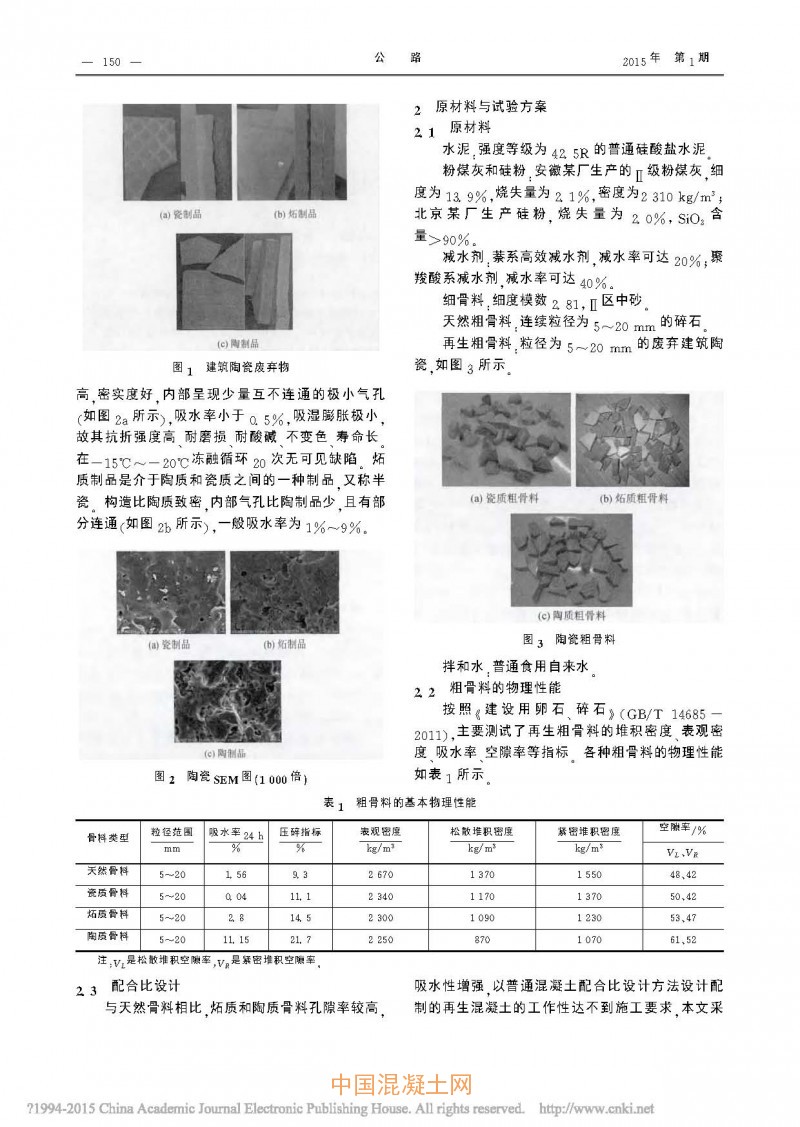點擊下載全文:陶瓷粗骨料混凝土配合比設計和性能試驗