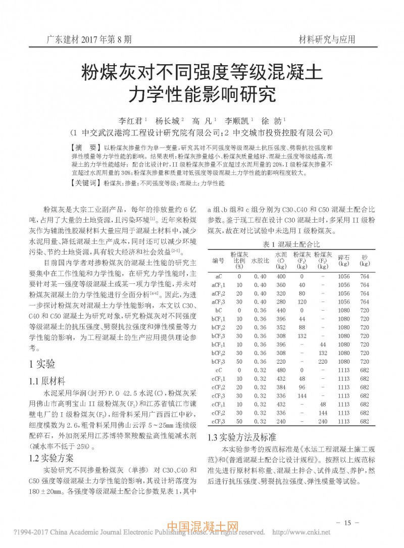 點擊下載全文:粉煤灰對不同強度等級混凝土力學性能影響研究