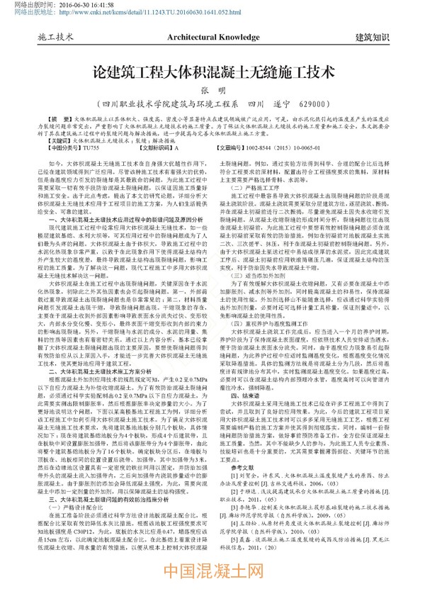 點擊下載全文:論建筑工程大體積混凝土無縫施工技術