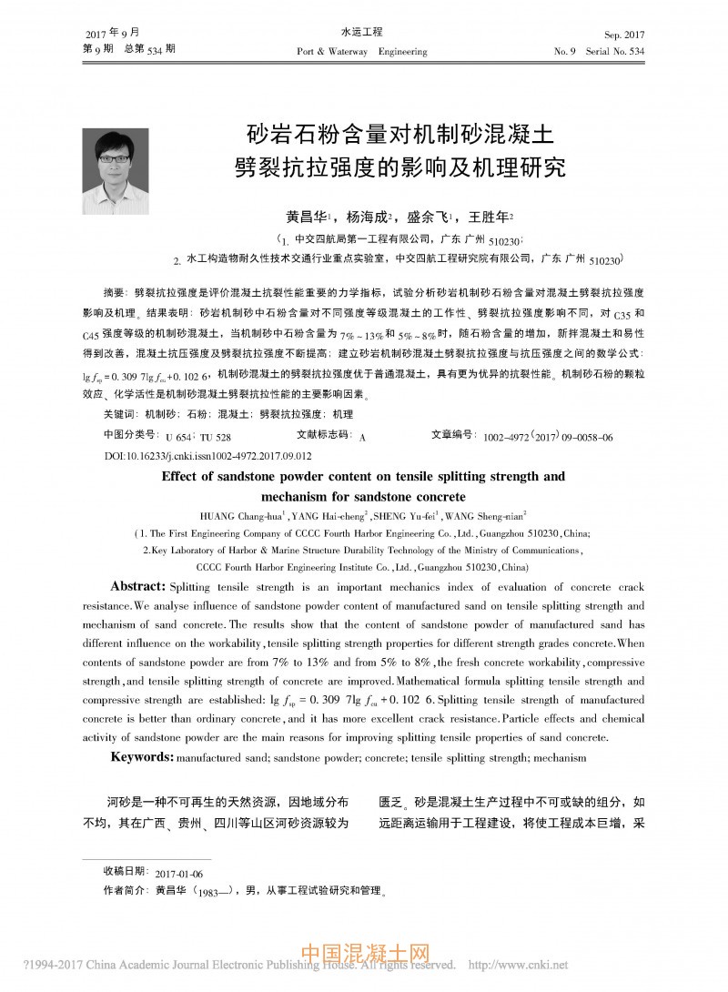 點(diǎn)擊下載全文:砂巖石粉含量對(duì)機(jī)制砂混凝土劈裂抗拉強(qiáng)度的影響及機(jī)理研究