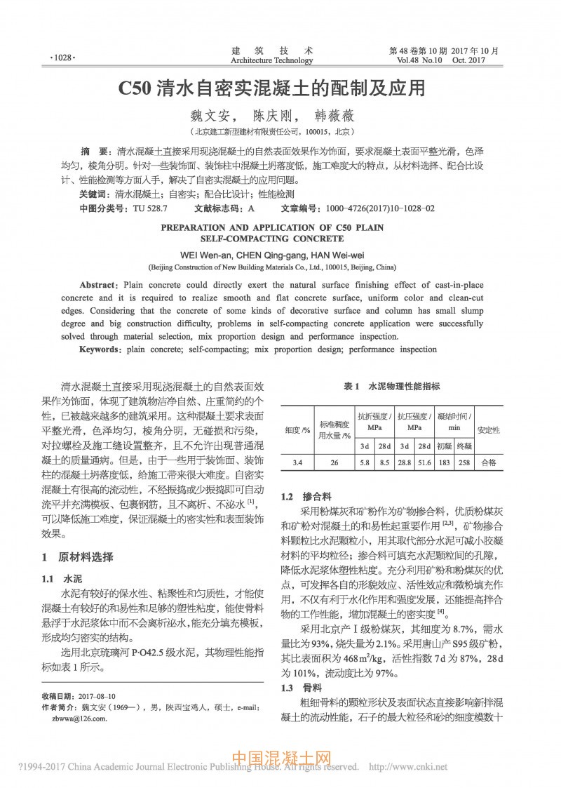 點擊下載全文:C50清水自密實混凝土的配制及應用