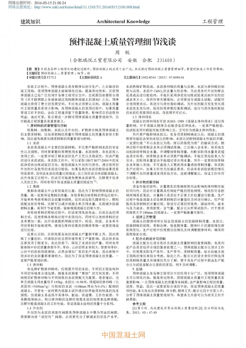 點擊下載全文:預拌混凝土質量管理細節淺談