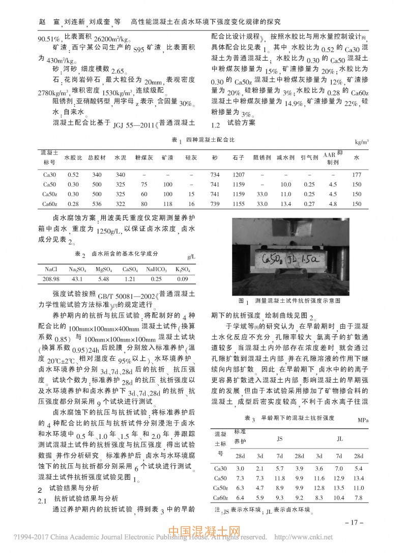 點擊下載全文:高性能混凝土在鹵水環境下強度變化規律的探究
