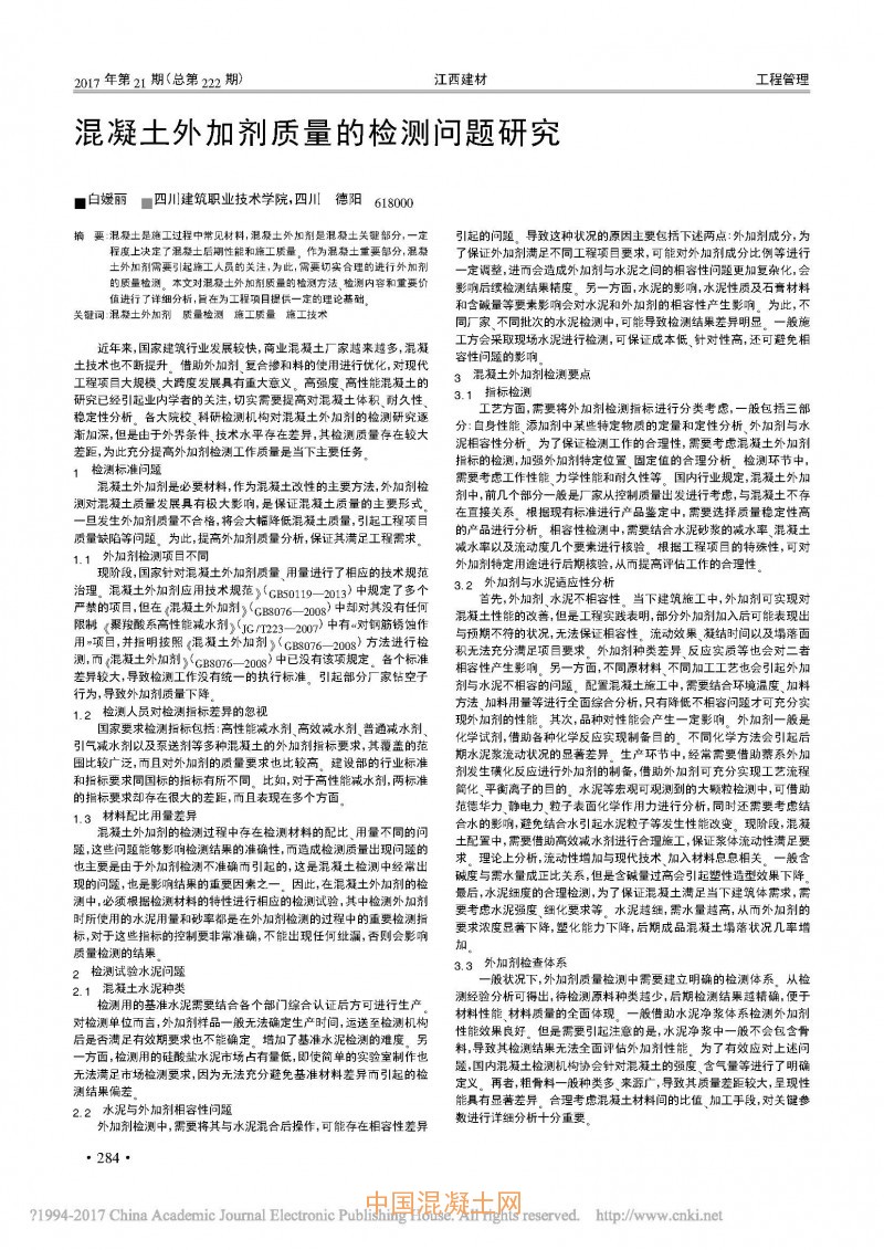 點擊下載全文:混凝土外加劑質(zhì)量的檢測問題研究