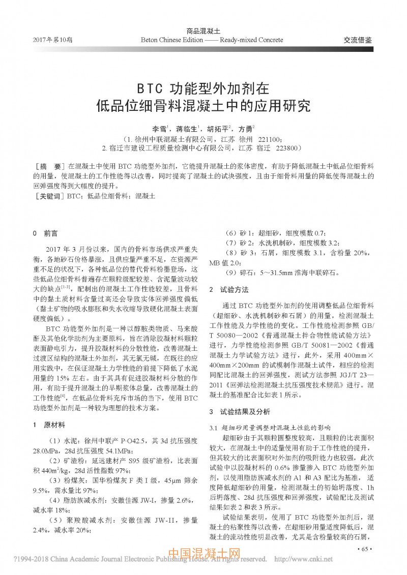 點擊下載全文:BTC功能型外加劑在低品位細骨料混凝土中的應用研究