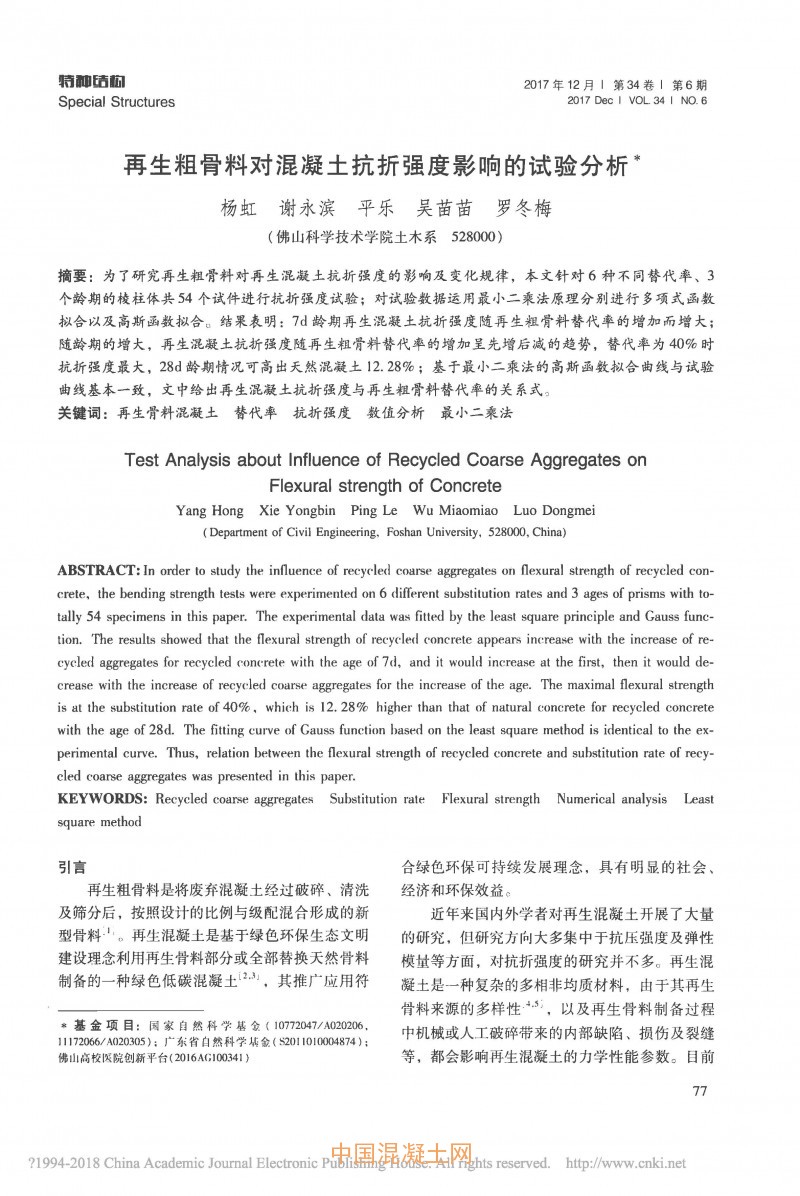 點(diǎn)擊下載全文:再生粗骨料對混凝土抗折強(qiáng)度影響的試驗(yàn)分析