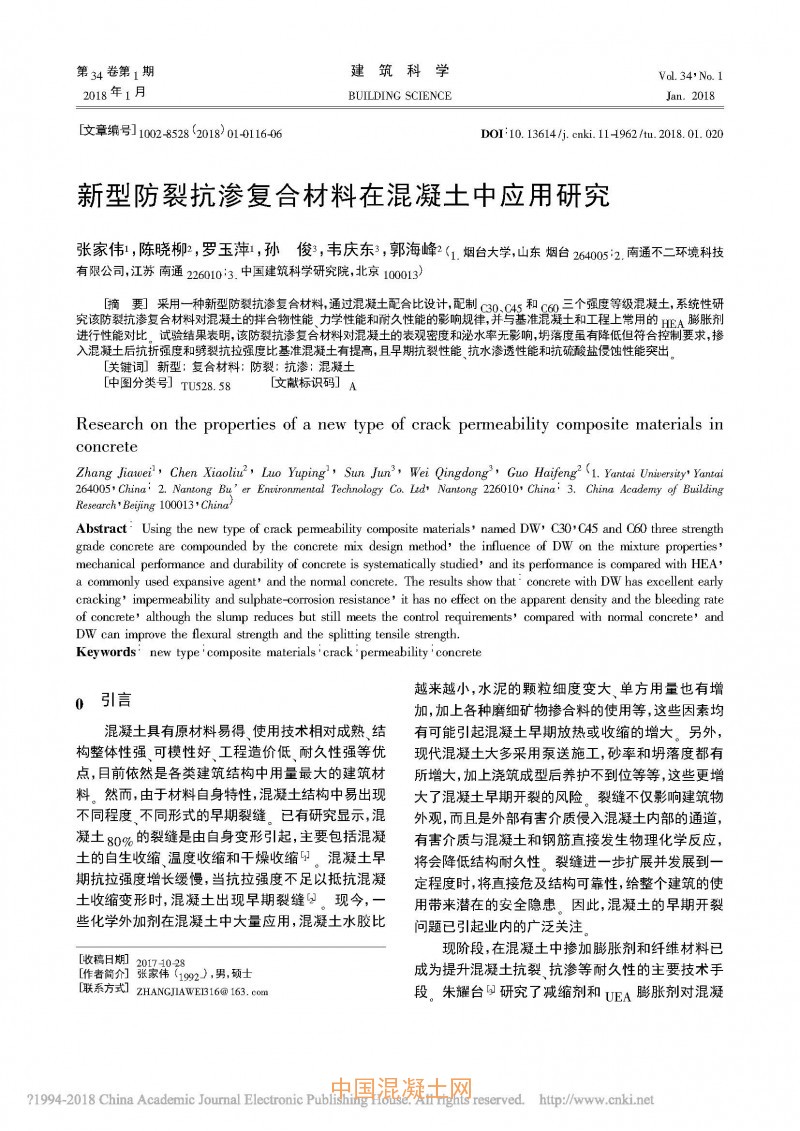 新型防裂抗滲復合材料在混凝土中應用研究