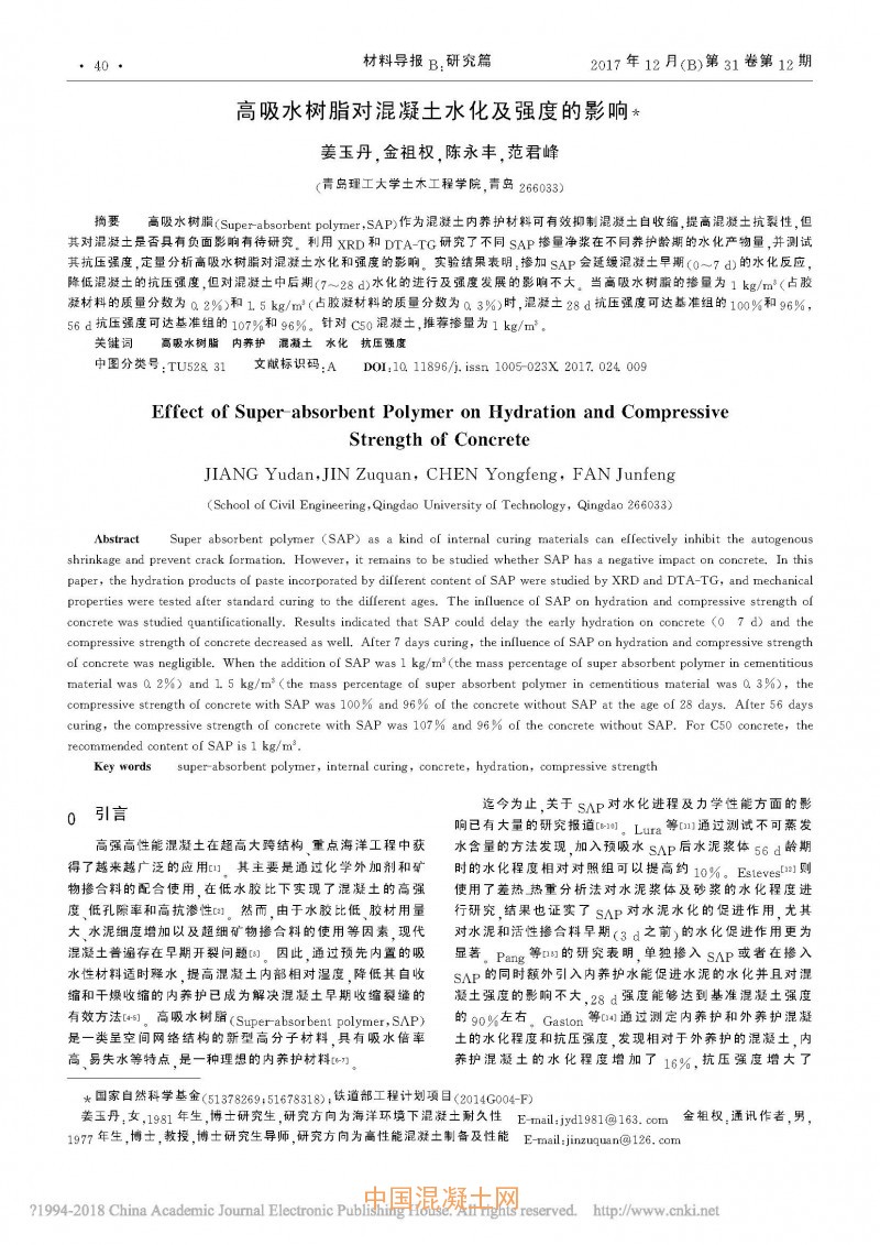 點擊下載全文:高吸水樹脂對混凝土水化及強度的影響