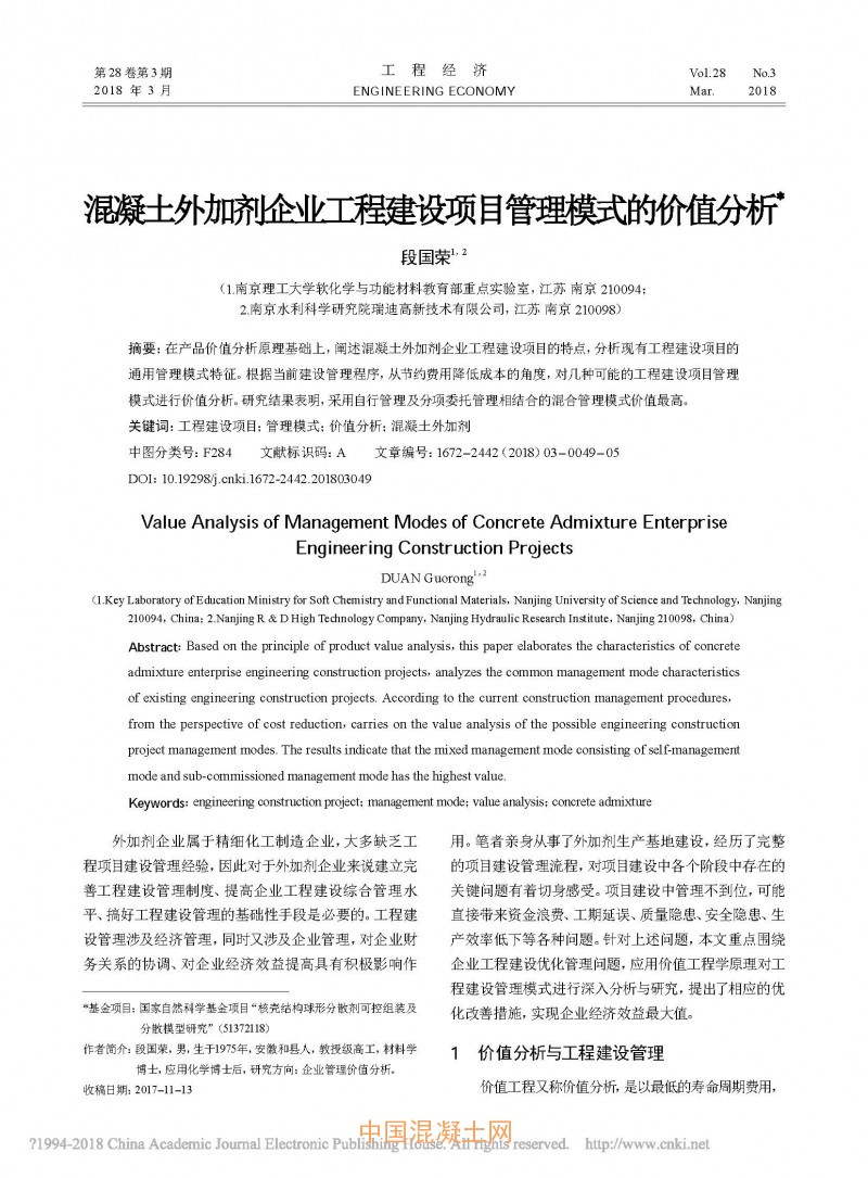 點擊下載全文:混凝土外加劑企業工程建設項目管理模式的價值分析
