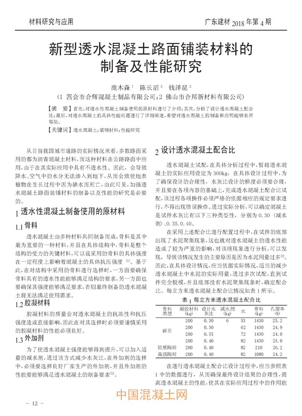 點(diǎn)擊下載全文:新型透水混凝土路面鋪裝材料的制備及性能研究