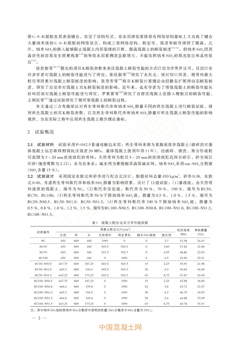 點擊下載全文:納米改性對再生混凝土雙K斷裂參數的影響