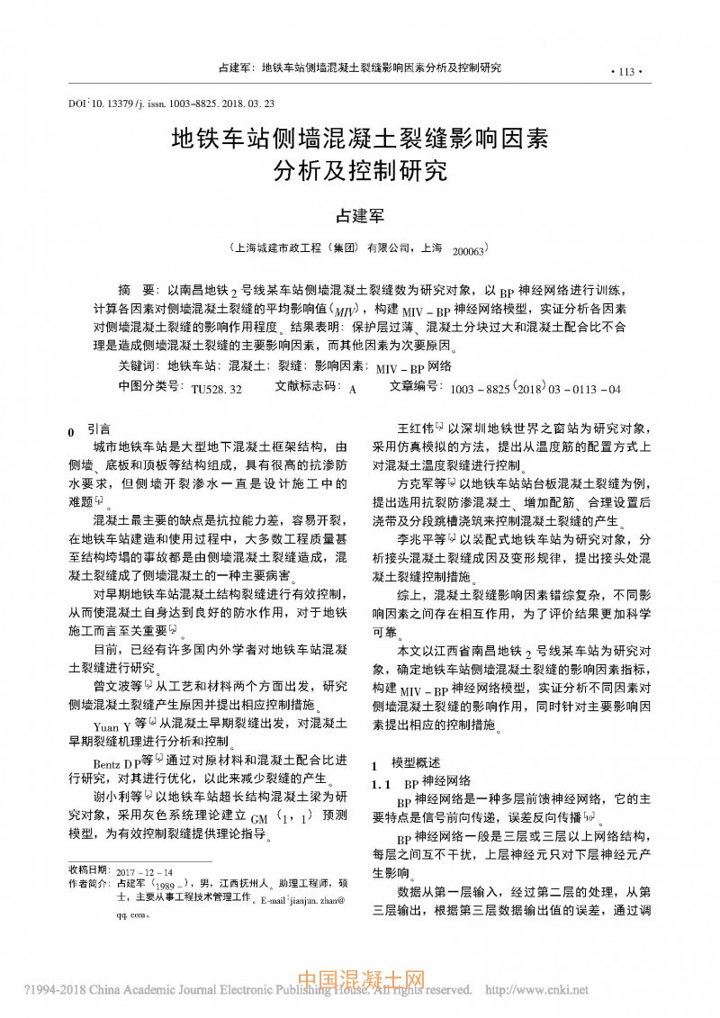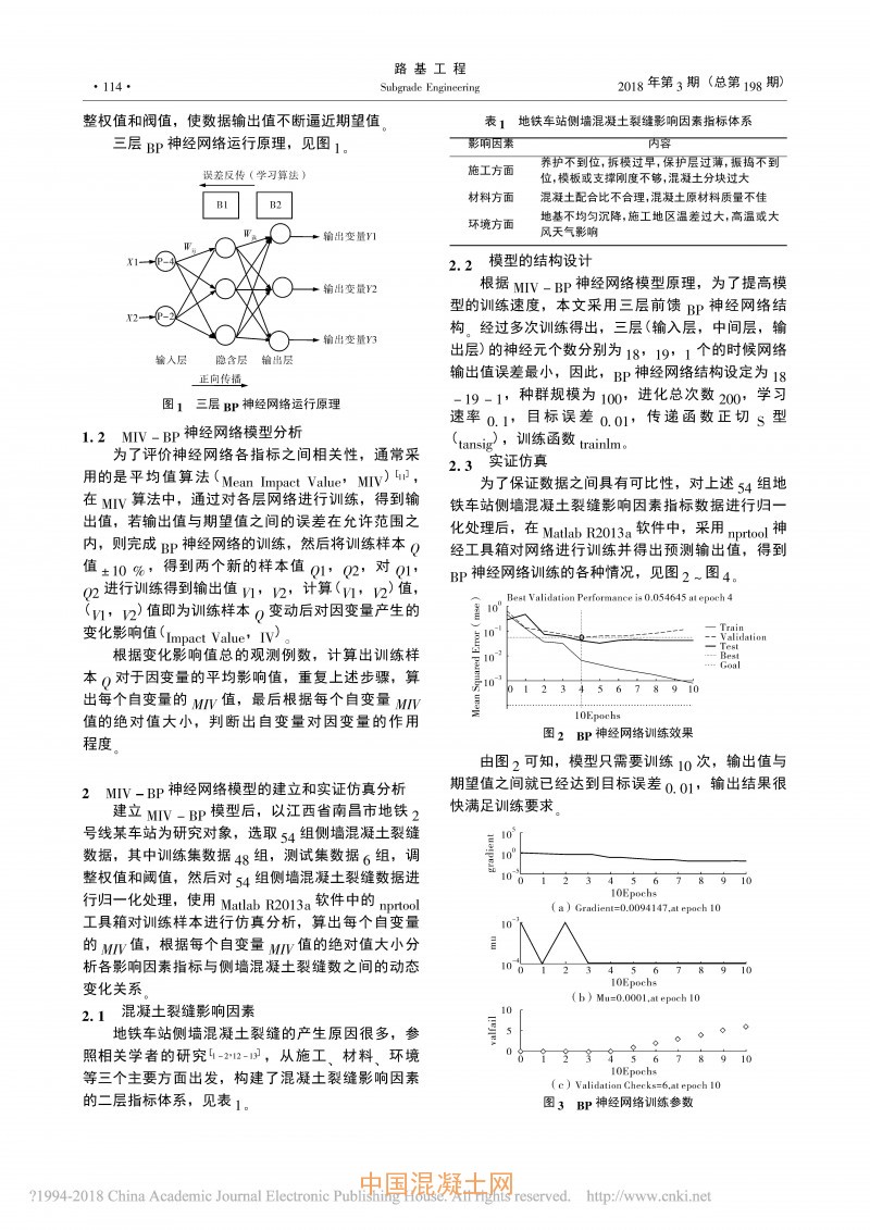 核心提示:南昌地鐵2號線某車站側(cè)墻混凝土裂縫數(shù)為研究對象,以BP神經(jīng)網(wǎng)絡進行訓練,計算各因素對側(cè)墻混凝土裂縫的平均影響值(MIV),構(gòu)建MIV-BP神經(jīng)網(wǎng)絡模型,實證分析各因素對側(cè)墻混凝土裂縫的影響作用程度。結(jié)果表明:保護層過薄、混凝土分塊過大和混凝土配合比不合理是造成側(cè)墻混凝土裂縫的主要影響因素,而其他因素為次要原因。