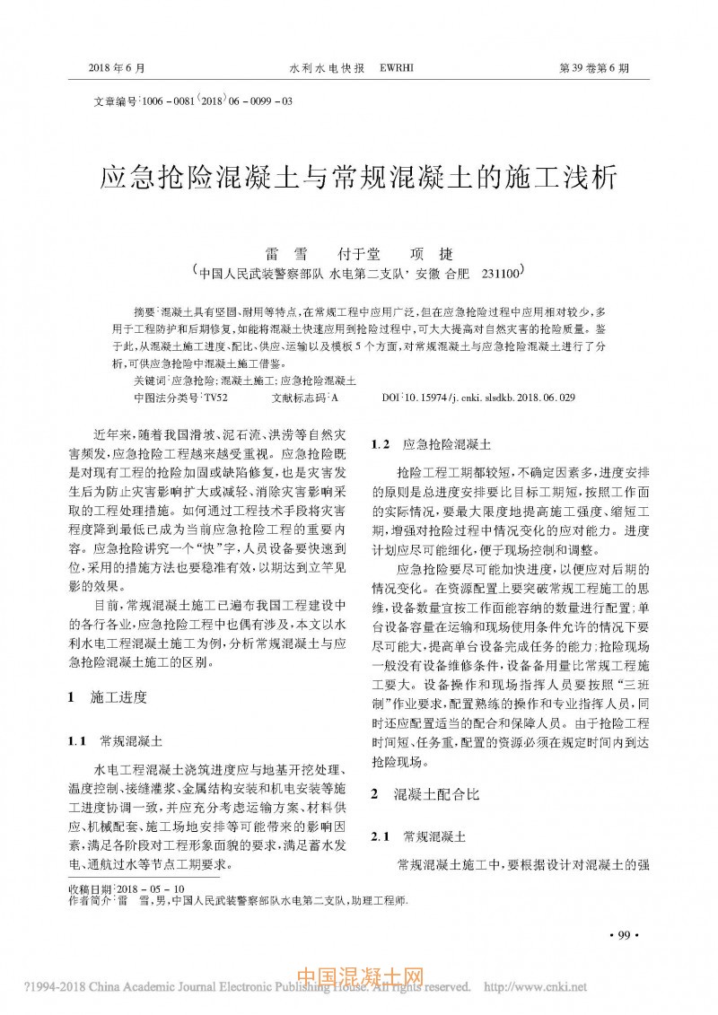 點擊下載全文:應急搶險混凝土與常規混凝土的施工淺析