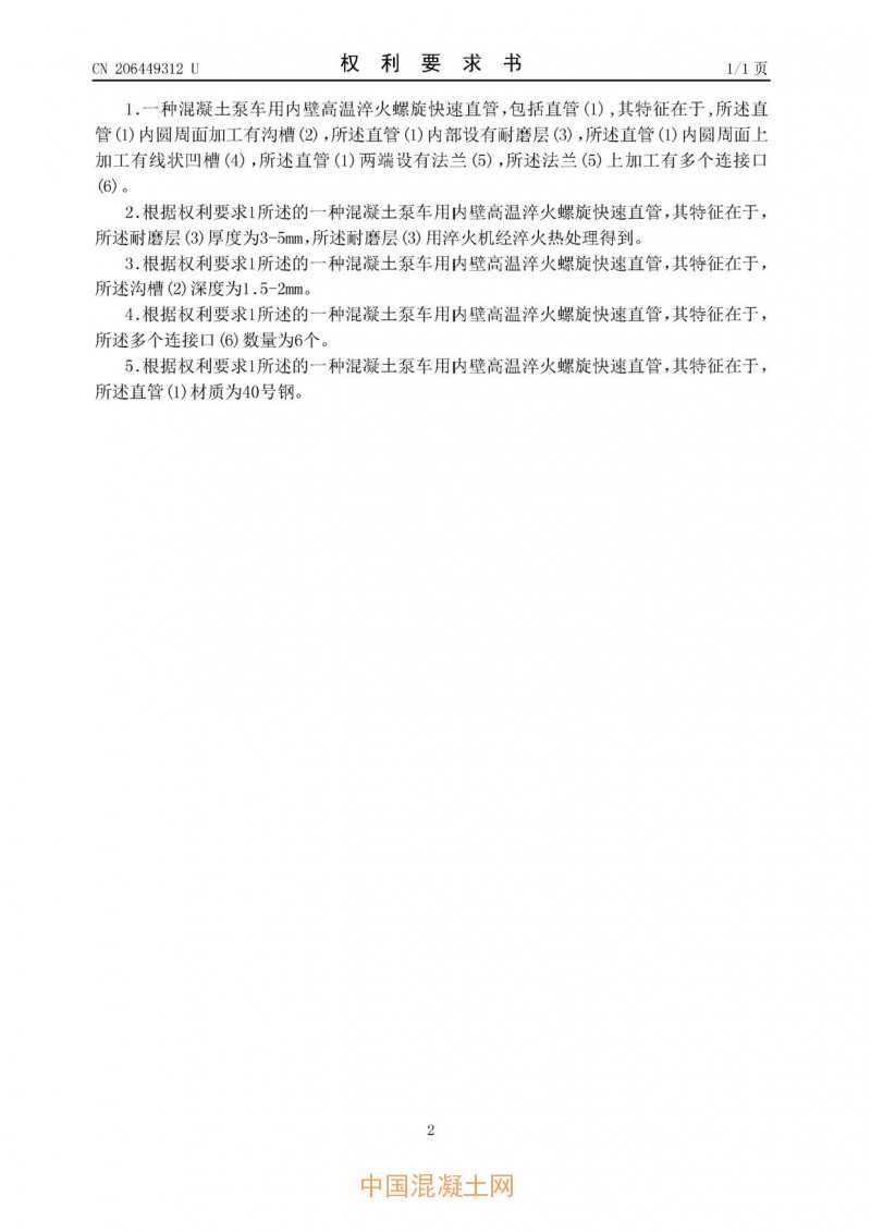 一種混凝土泵車用內壁高溫淬火螺旋快速直管(公開號:CN206449312U)