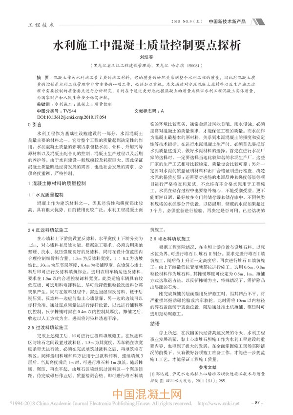 點擊下載全文:水利施工中混凝土質(zhì)量控制要點探析