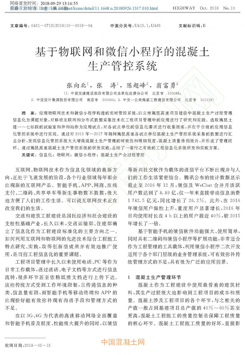 核心提示:應用物聯網技術和微信小程序構建的實時管控系統,以云南嵩昆高速項目建設中混凝土生產過程管理信息化為課題對象,對移動互聯網和分布式數據采集技術在工程項目管理中的應用進行了研究和實踐。選取嵩昆土建一~七標段的試驗室和拌和站作為應用試點,對各試點單位的信息化需求進行收集提煉,并在平臺級的應用信息化管控系統中進行實現。