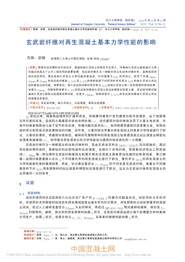 點擊下載全文:玄武巖纖維對再生混凝土基本力學性能的影響
