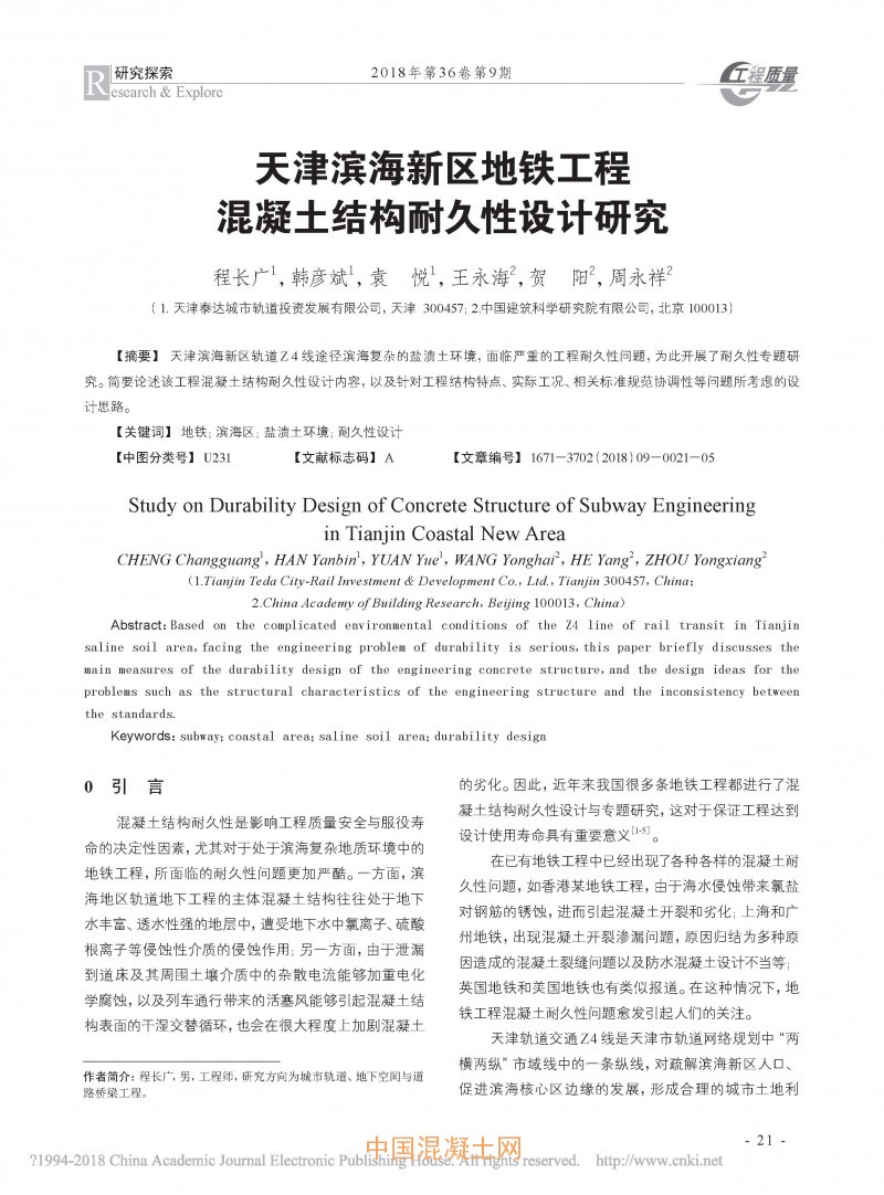 點(diǎn)擊下載全文:天津?yàn)I海新區(qū)地鐵工程混凝土結(jié)構(gòu)耐久性設(shè)計(jì)研究