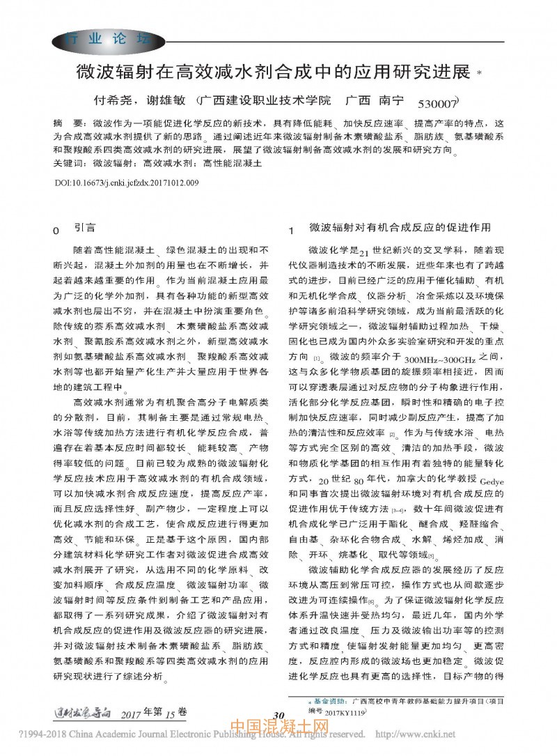 點(diǎn)擊下載全文:微波輻射在高效減水劑合成中的應(yīng)用研究進(jìn)展