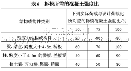 ③負溫施工的水泥混凝土結(jié)構(gòu)必須達到拆模強度后, 方可拆模; 拆模所需的水泥混凝土強度比應(yīng)符合表6 的規(guī)定, 拆除承重模板的養(yǎng)生時間, 應(yīng)滿足拆模強度比的要求; 非承重模板的拆模時間, 必須達到受凍臨界強度, 并應(yīng)在保溫覆蓋不少于21 d 以后,施工條件允許時, 保溫層和模板可于春融后拆除。