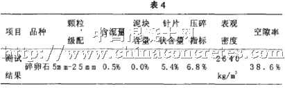 表3、表4、表5 分別是試驗所用砂、石、粉煤灰的有關參數。
