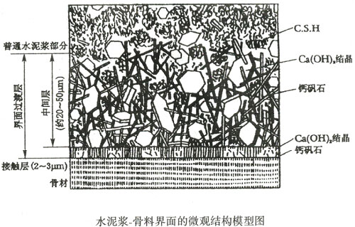 硬化后的混凝土,可以分為水泥基相( hydrated cement paste )、分散粒子( aggregate )和界面過渡層( transition zone between cement paste and aggregate )三個組成要素,或叫三個相。 礦渣超細粉( ground granulated blast frnace slag )