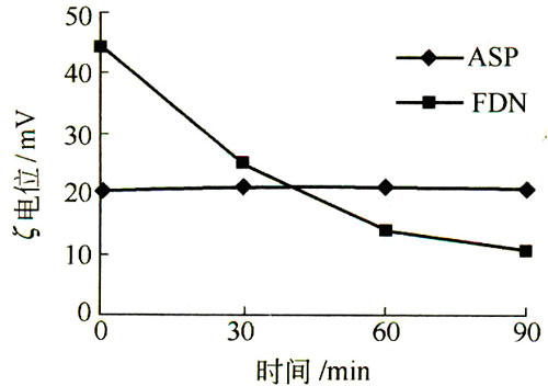 摻不同減水劑的水泥顆粒表面 ζ電位與時間的關系