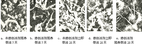 摻與不摻防凍劑水泥水化生成物電子顯微鏡照片