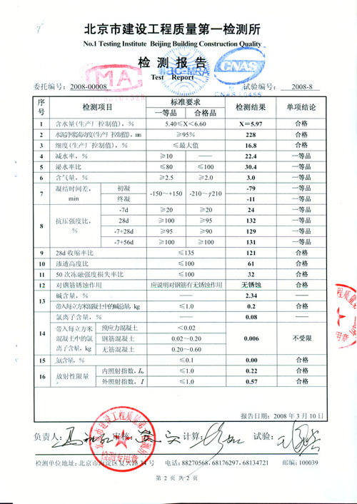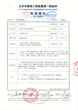 6 、防凍劑摻量少 (2%) ,具有減水、早強、增強、防凍、降低臨界強度、不銹蝕鋼筋等特點,突破了過去防凍劑高摻量的禁區,實現了防凍劑低摻量的可行性。