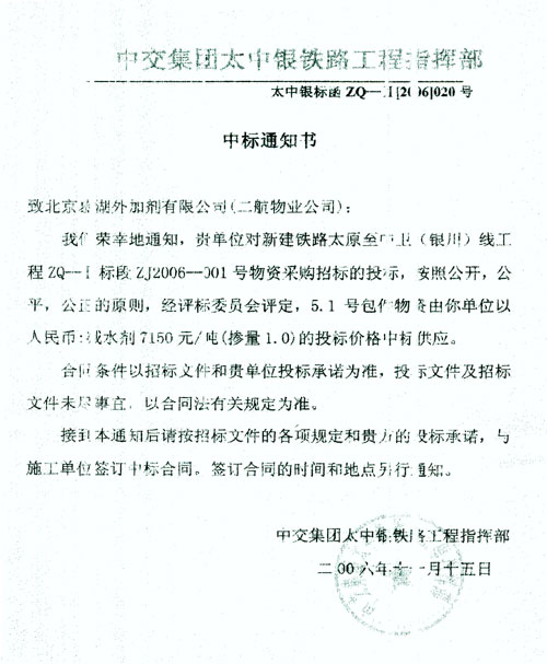| 中標通知書 |